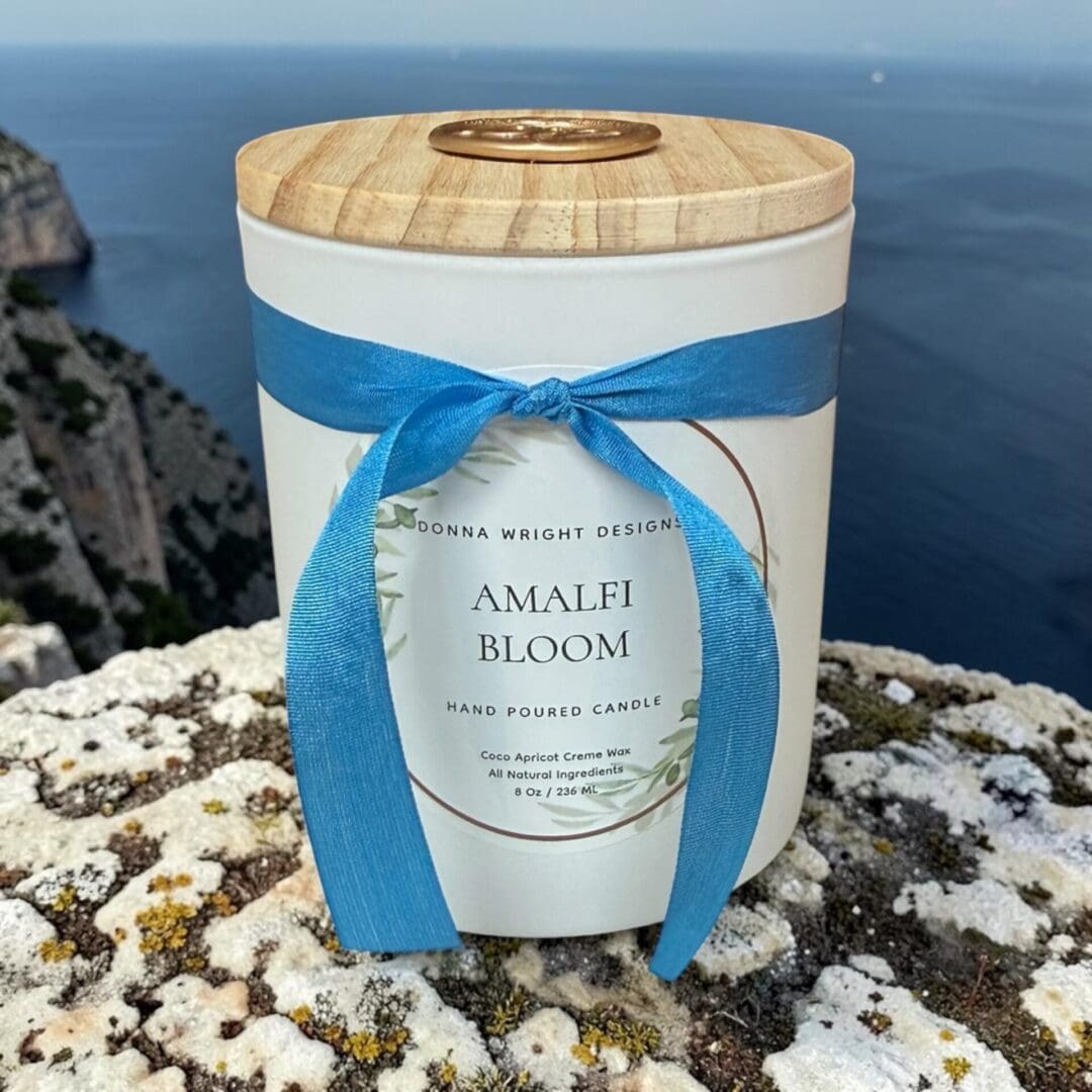 Introduce the Amalfi Bloom candle to create glow and enhance fragrance depth.