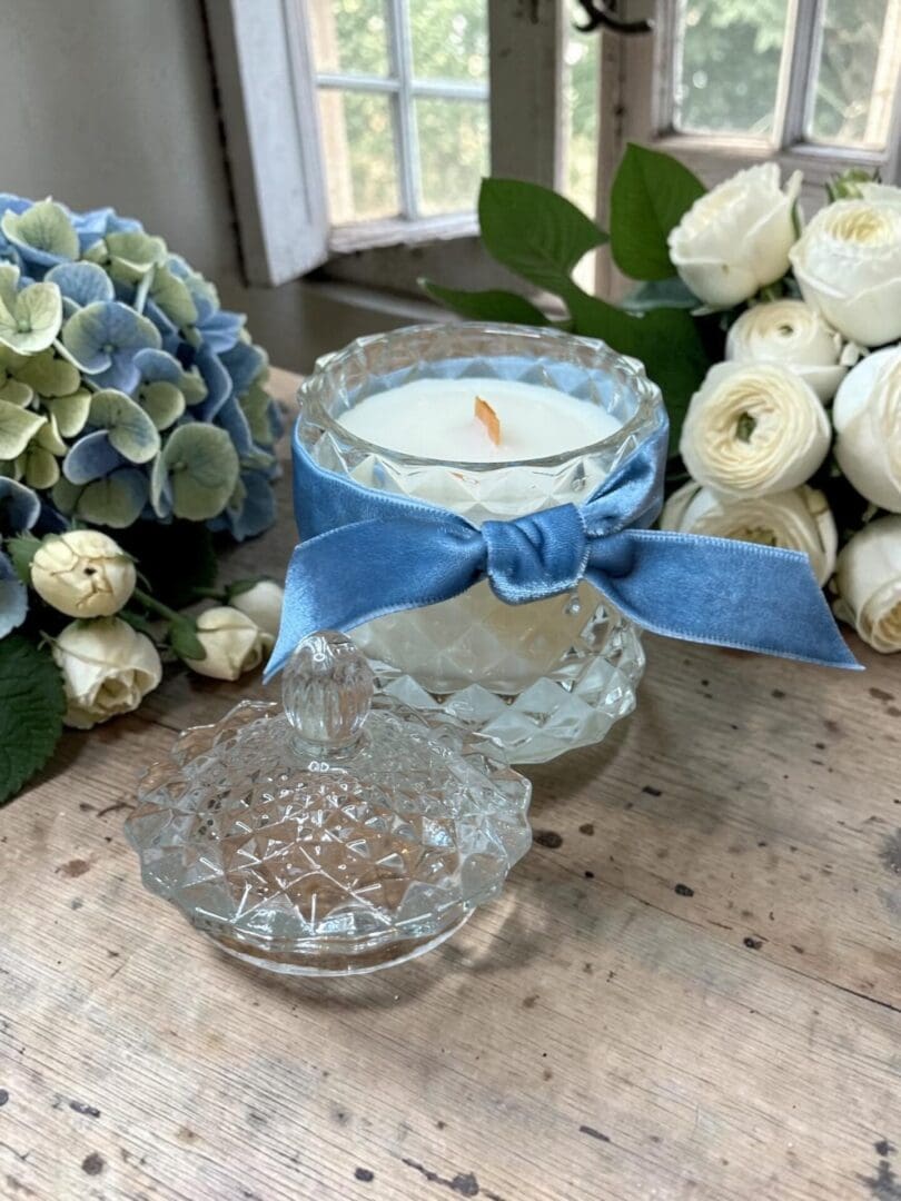 Our Gardenia & Tuberose candles are presented in classic frosted glass vessels with rustic pine wood lids.  Next, the candles are enhanced with our gold wax logo stamp then further embellished with velvet or silk ribbon.  Altogether, the luxury perfumed grade candles present a romantic appeal that will enhance any home and make the perfect gift.